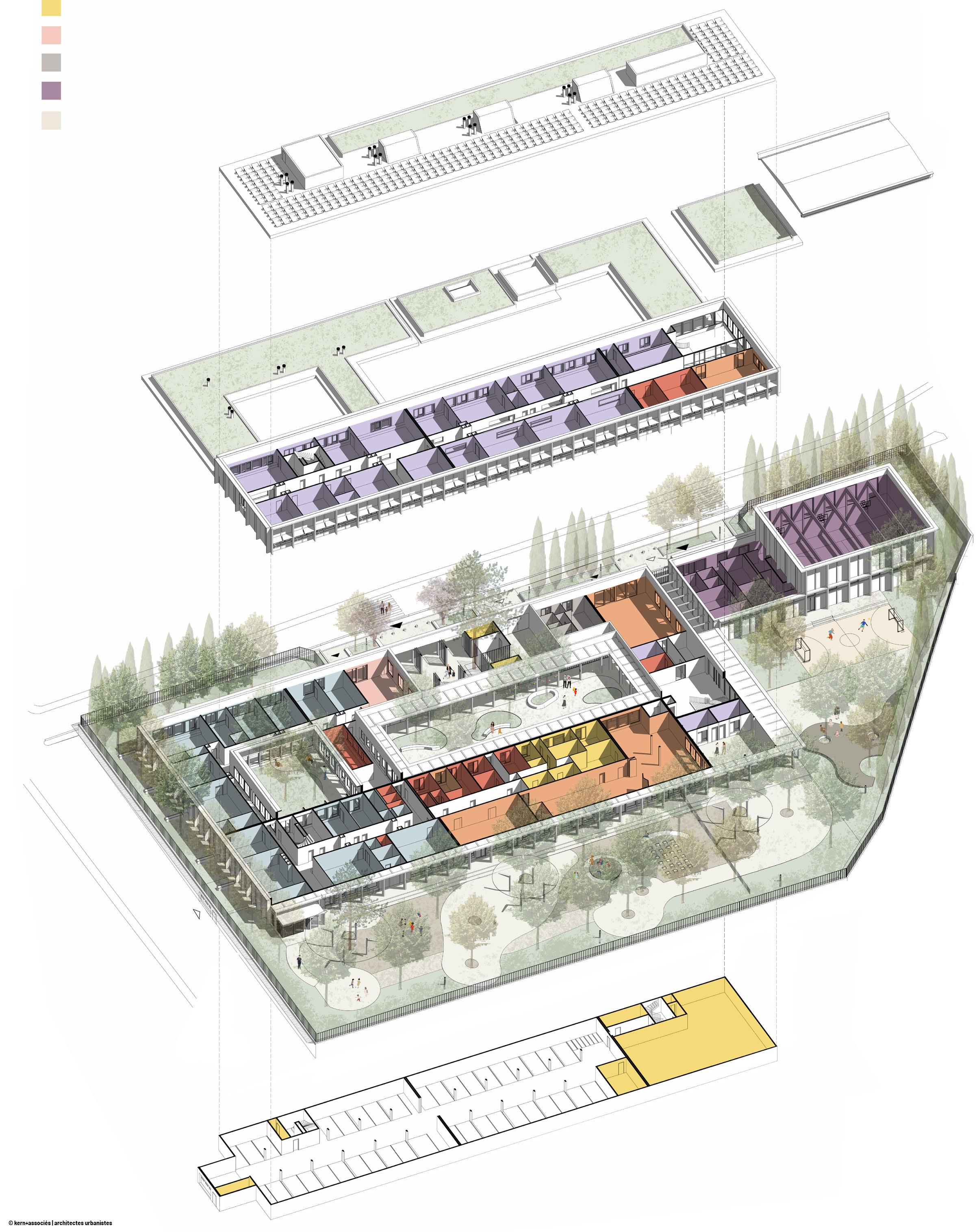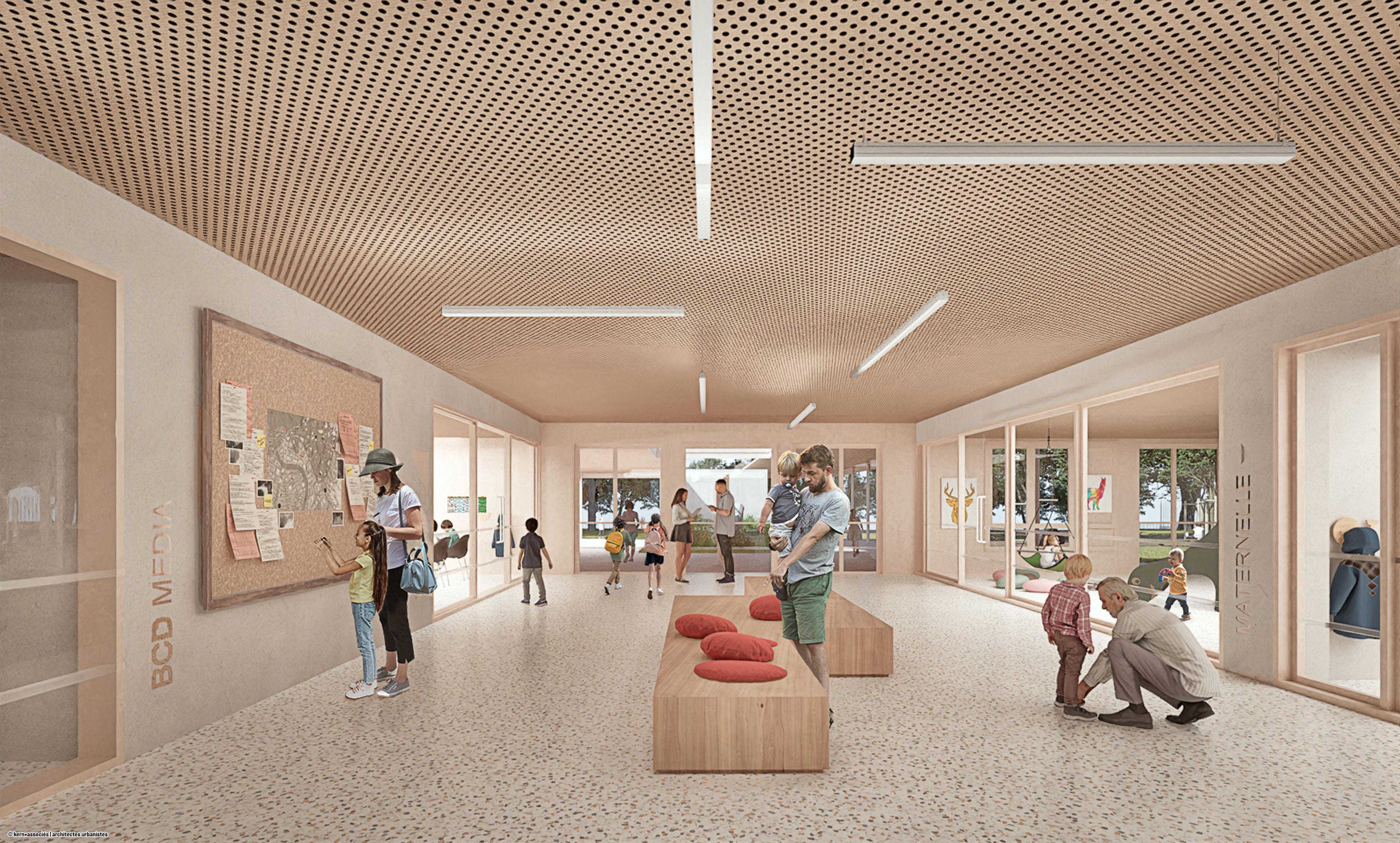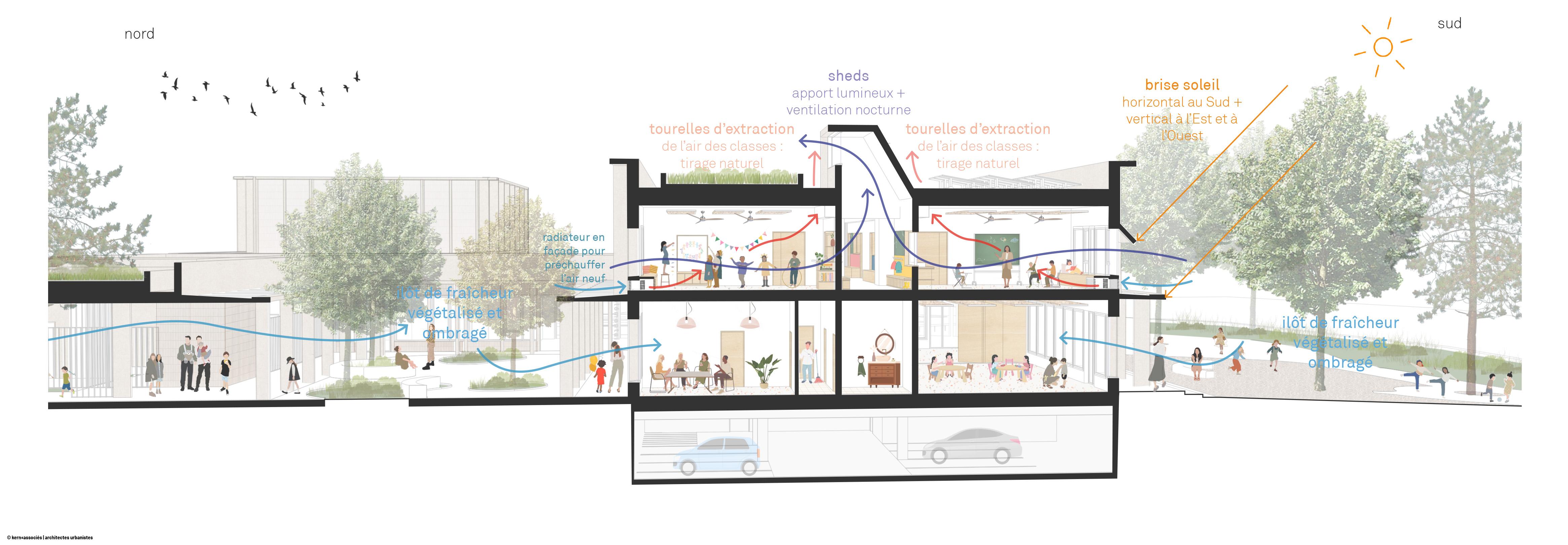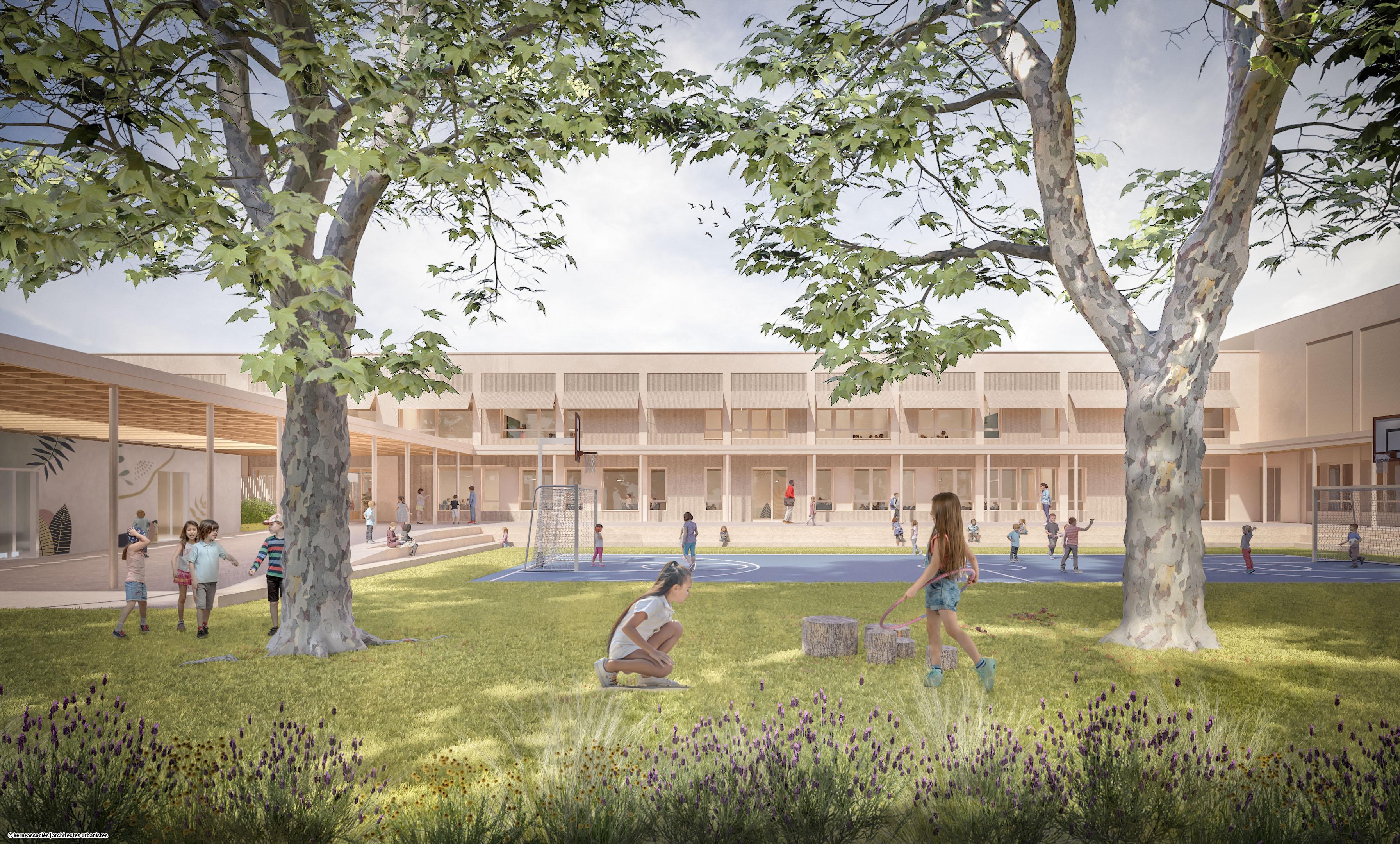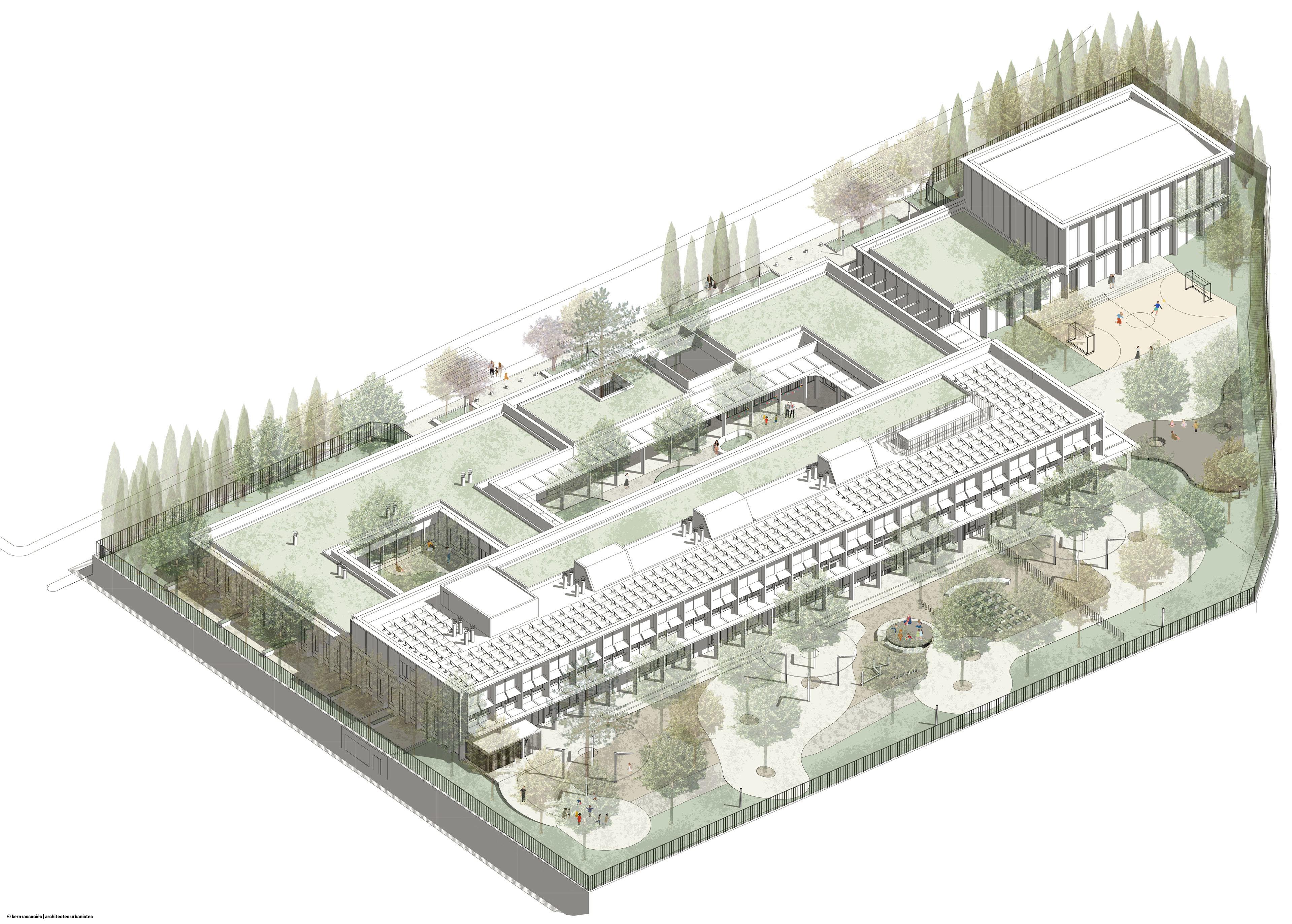 école primaire de 23 classes (9 maternelles et 14 élémentaires), gymnase, conciergerie, cuisine satellite, BCD Média Mission